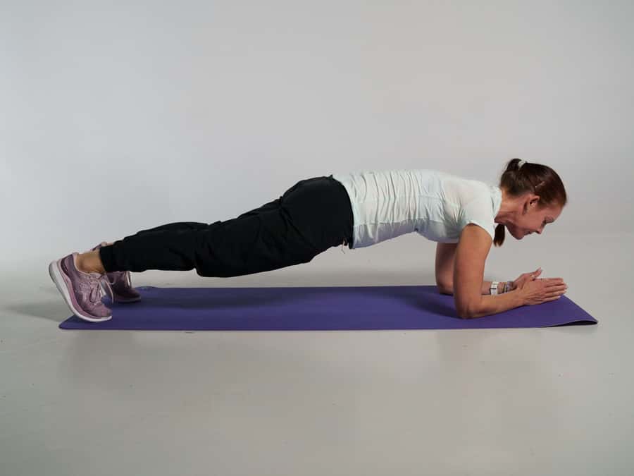 Legg deg på magen og plasser underarmene i gulvet med albuene rett under skuldrene. Løft kroppen opp på tærne, slik at du danner en rett linje fra hode til hæl. Hold posisjonen så lenge du klarer 3 ganger. Ha ca 1-2 min pause mellom hvert sett.