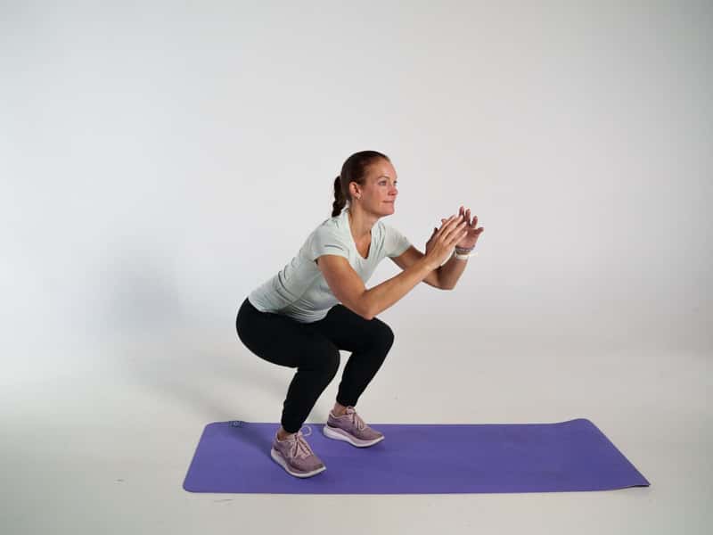 Stå med føttene i skulderbredde, hold ryggen rett med et nøytralt bekken – ikke svai eller krom. La blikket følge øvelsen i det du senker deg rolig ned. Bøye knær og hofte samtidig. Gå så dypt du klarer med god teknikk, og press opp igjen gjennom hælene. Gjør 3 sett med 10–12 repetisjoner, med pause på ca 2-3 minutter mellom hvert sett.