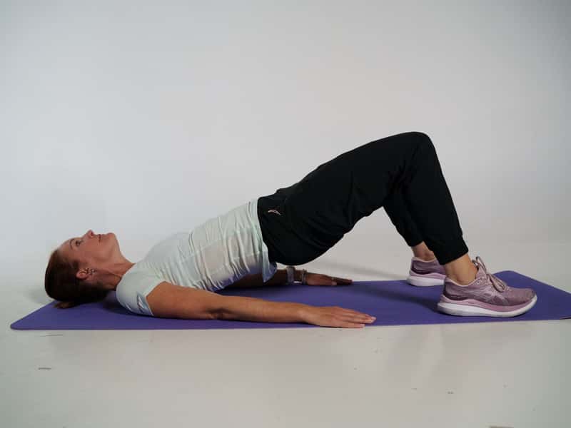 Ligg på ryggen med knærne bøyd og føttene i gulvet, ca hoftebredde. Armene ligger langs sidene, med mindre du bruker manualer/strikk for å øke belastningen. Hælene skal være ca en hånds avstand fra rumpa. Stram rumpe og mage, press så hælene i gulvet og løft hoftene mot taket. Senk så rolig og kontrollert tilbake til gulvet.