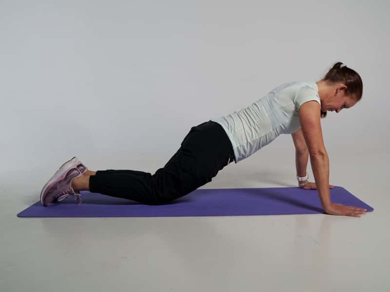 Plasser hendene litt bredere enn skulderbredde. Hold kroppen i en rett linje fra hode til hæl, ikke svai eller krum korsryggen. Fest blikket litt foran hendene. Senk deg kontrollert ned ved å bøye albuene – press deg så opp igjen.