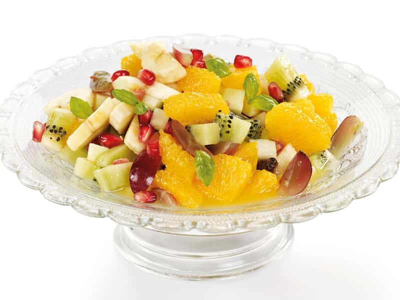 Lag en sunn og mager fruktsalat til dessert. Dersom du skal kose deg litt ekstra kan du servere med litt vaniljekesam eller lett-is. Eller du kan skjære opp forskjellig frukt og servere det som snacks. Hva ser vel mer innbydende ut enn et stort fruktfat?