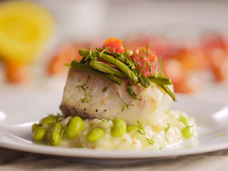 Ovnsbakt Hyse med digg risotto med MagerOst Jalapeño