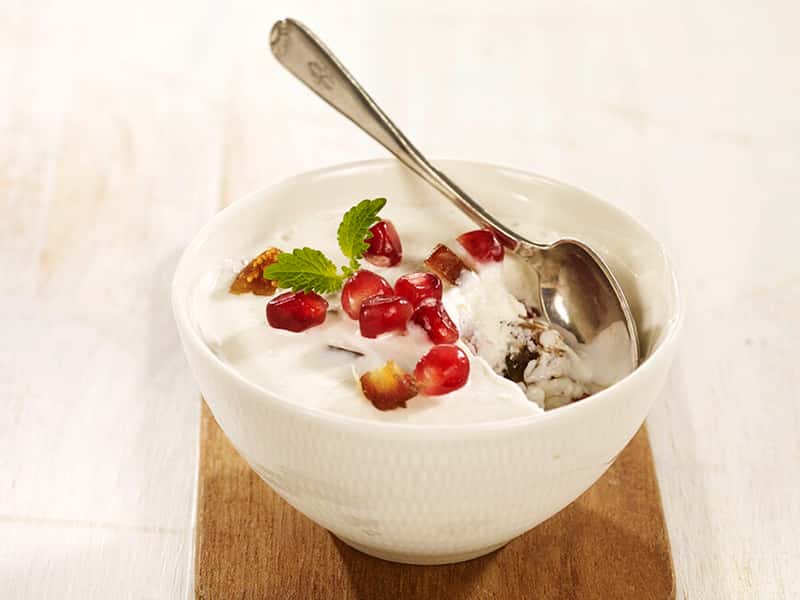 Vaniljeis med fiken, dadler og granateple