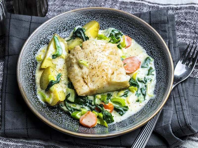 Dette er en smakfull og enkel fiskemiddag med torsk og bacalaogrønnsaker.