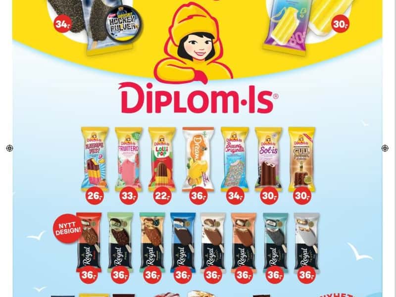 Store kjeksis som Lion Kings Size, Daim Balltopp og Big Deal, samt pinneisen Royal Trippel, gir ca 400 kalorier per is – som tilsvarer en liten middag! Så du kan spare mange kalorier med å velge smart.
