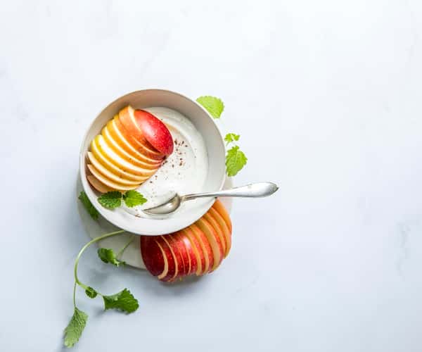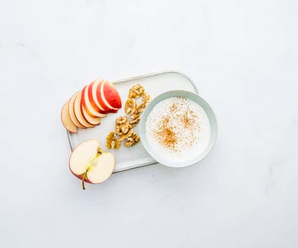 Mellommåltid kesam med kanel, valnøtter og eple